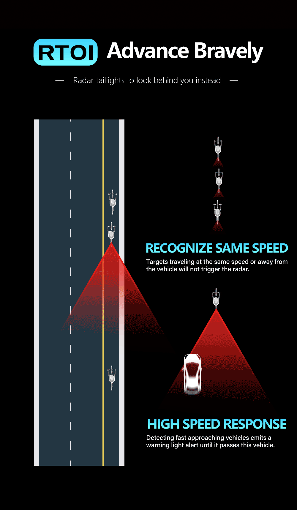 Intelligent radar bicycle rear light RT01 with advanced safety functions.
